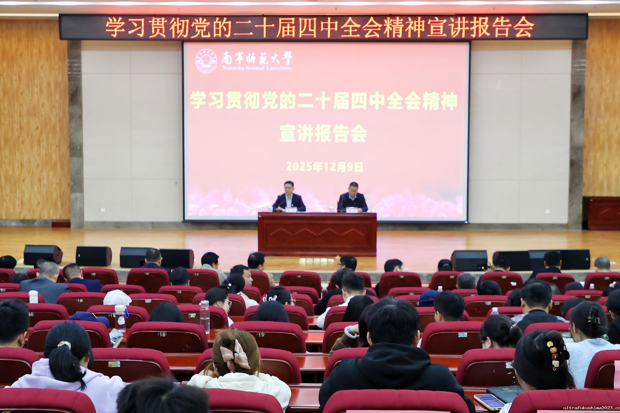12月9日下午,学校在武鸣校区图书馆报告厅举行学习贯彻党的二十届四中全会精神专题宣讲报告会。学校校长隆广庆作主题宣讲。报告会由学校党委宣传部部长纪明主持。