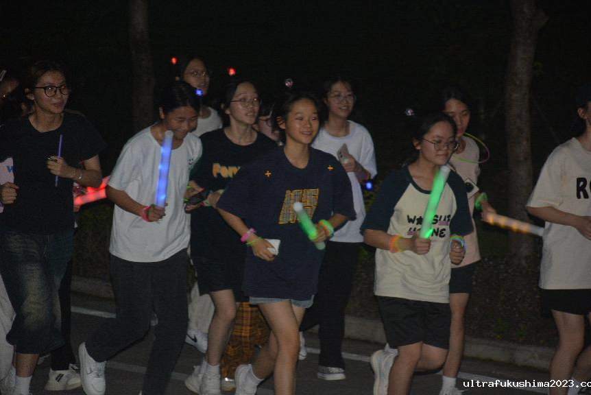 随后,同学们一起进行热身活动后,手持荧光棒,在领跑员与工作人员的引领下,沿着既定路线开启夜跑活动。夜跑过程中,同学们相互鼓励、并肩奋进,凝聚集体力量,生动诠释“热力青春”的活动内涵。
