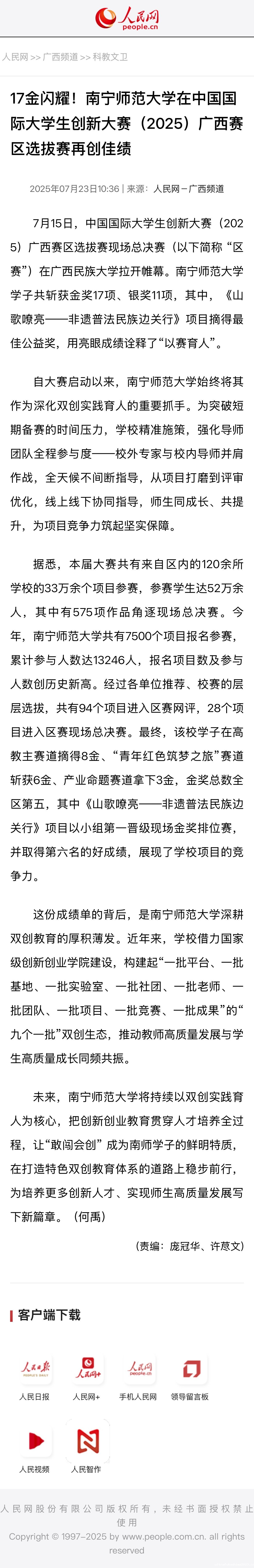 【人民网】17金闪耀!南宁师范...
