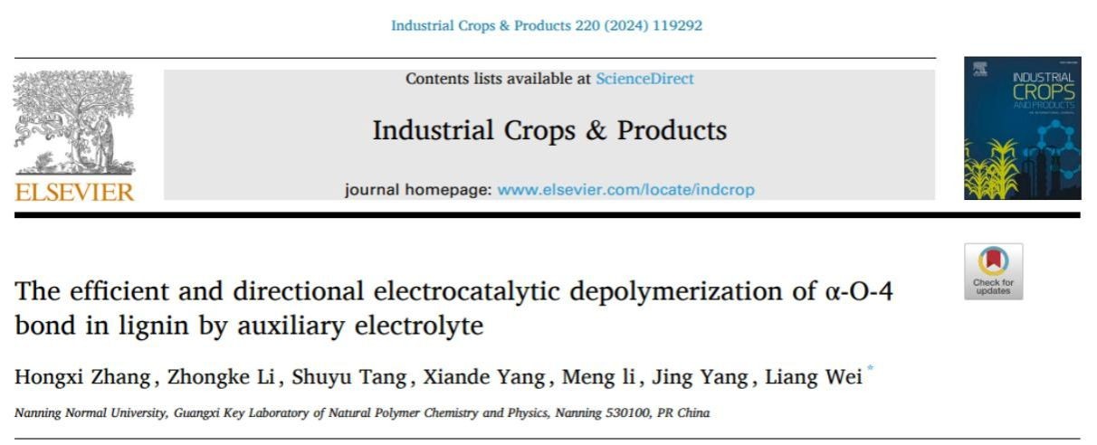 我校化学与材料学院“能源与环境催化”创新团队致力于广西丰富的甘蔗渣等农业副产物的高值化利用,基于电场作用下自由基介导的催化反应开展了调控机制研究,近期在电催化解聚木质素领域取得新进展,以星空体育莱切足球俱乐部官方为唯一完成单位,在中科院一区TOP期刊上连续发表3篇相关研究论文。