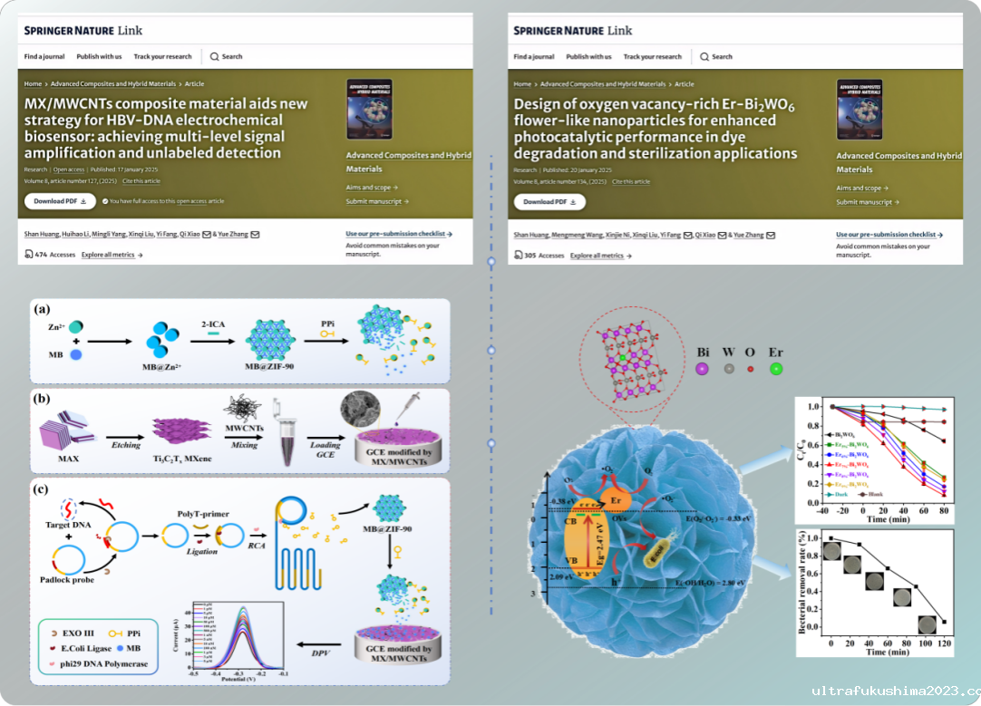 我校化学与材料学院研究团队近期在功能纳米材料生物传感与光催化应用领域取得重要进展,两项创新成果连续发表于材料科学领域国际权威期刊《Advanced Composites and Hybrid Materials》(中科院一区Top期刊,复合材料排名1/35,2024年IF 23.2)。两项成果均以星空体育莱切足球俱乐部官方为第一完成单位,浙江工商大学为共同完成单位,其中黄珊教授为第一作者,肖琦教授和章悦研究员为共同通讯作者,方义博士参与了研究工作。