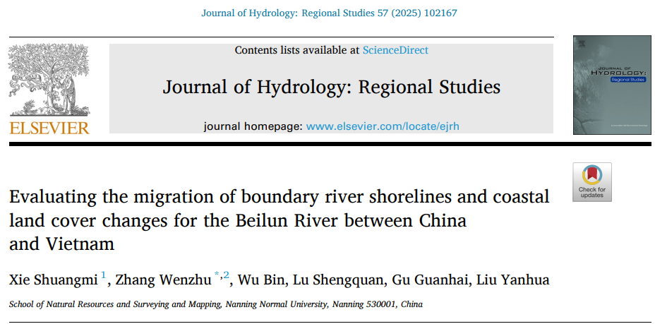 研究团队在Journal of Hydrology: Regional Studies(中科院二区TOP,SCI-Q1)发表了题为“Evaluating the migration of boundary river shorelines and coastal land cover changes for the Beilun River between China and Vietnam”的研究论文。文章聚焦中越边境北仑河的历史河道重建,应用DSAS模型、土地动态转移矩阵量化北仑河沿岸的土地覆盖变化和特征,进而分析河流海岸线变化对两岸土地覆被变化的影响。该文由张文主副教授为通讯作者,硕士研究生谢双蜜为第一作者共同完成。